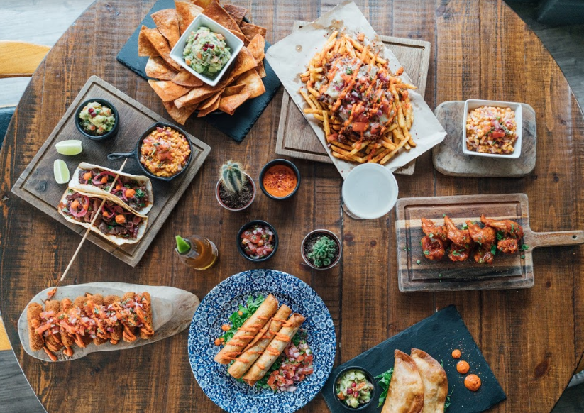 Layout of spiced fries, topped with melted cheddar cheese, chilli beef, fresh chillies, garnished with our citrusy pico de gallo and delicious hot sauce. Perfect for sharing or not!. Vegan and Veggie available